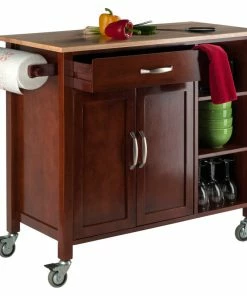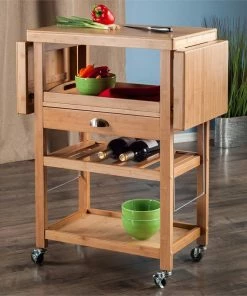 Winsome Wood Kitchen Cart, Double Drop Leaf, Cabinet With Shelf