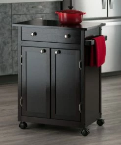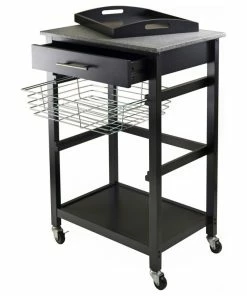 Winsome Wood Transitional Black Granite And Wood Utility Cart 20322