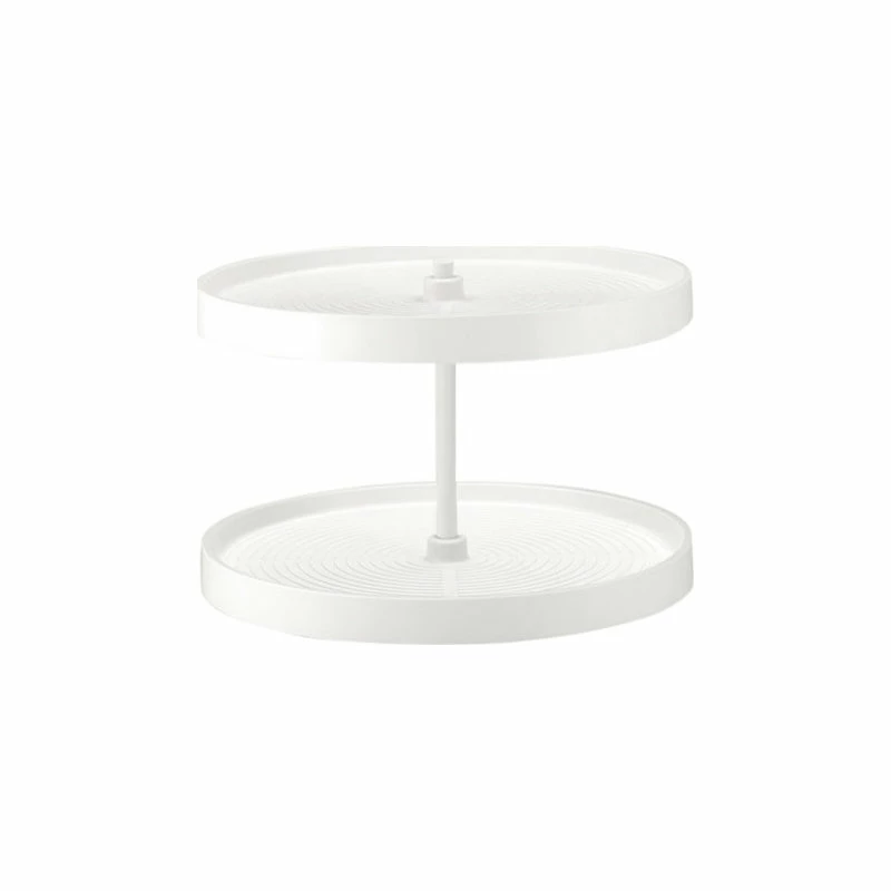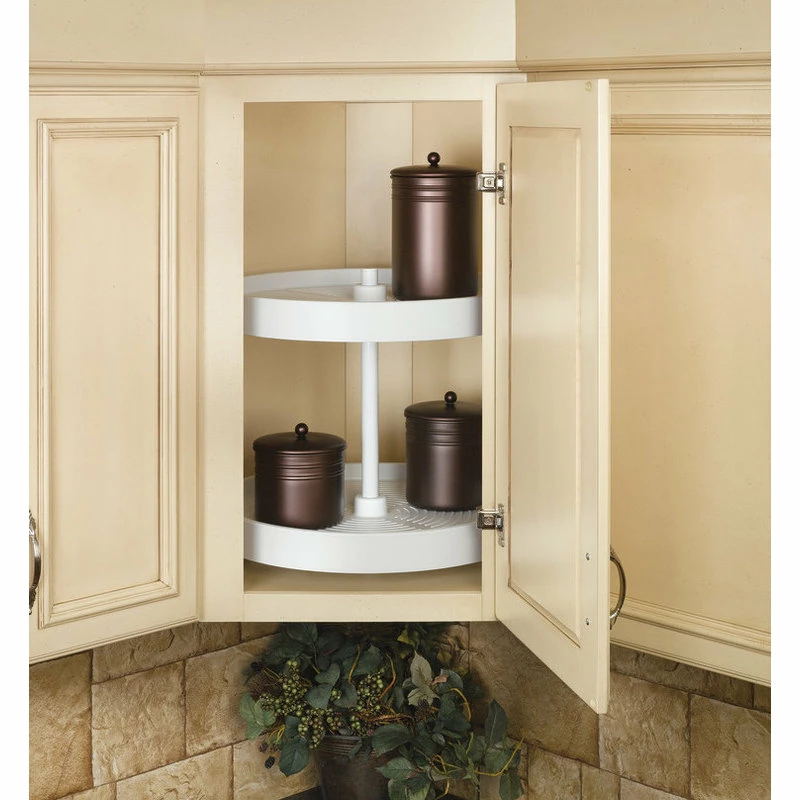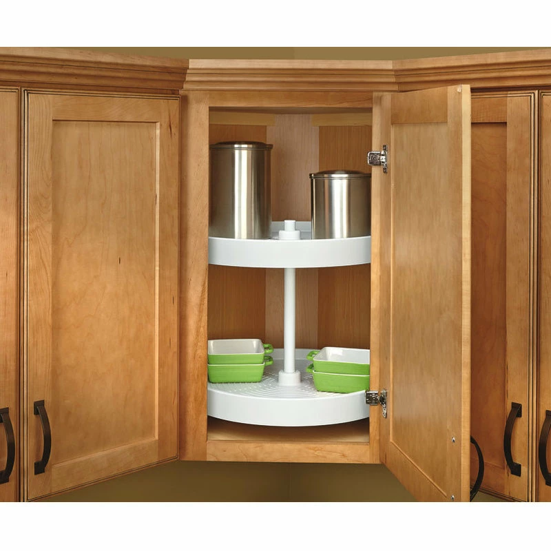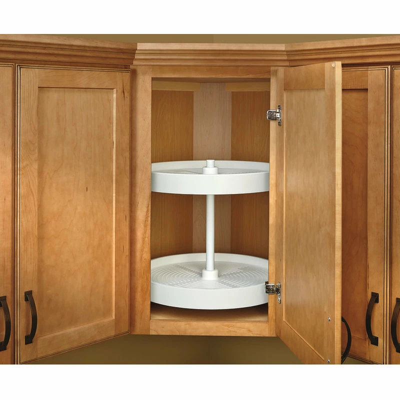 Rev-A-Shelf’s Lazy Daisy polymer susans feature a unique patented snap pin that make installation a breeze. Most susans are made from durable polypropylene plastic and plastic hub is molded right into the tray. Available in single, 2-shelf and 3-shelf models offered in both White and Almond colors.
