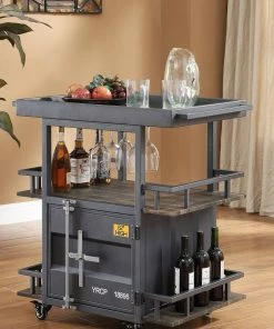 Acme Furniture ACME Cargo Serving Cart, Antique Walnut & Gunmetal