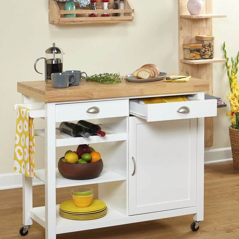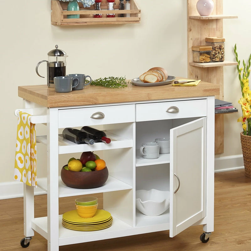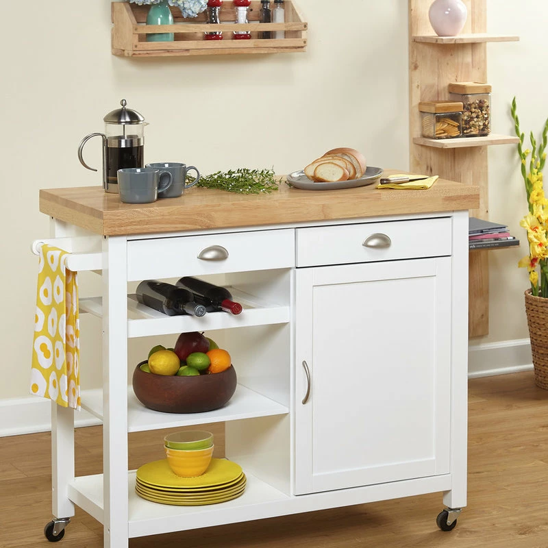 The Mezzanine Shoppe Martha Kitchen Cart, White/Natural
