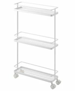 Wheel good fun!, Keep this ultra-slim storage cart stocked with oils, spices, and shakers. Hang utensils and kitchen tools on the moveable hooks. Roll out this kitchen companion when you need it and tuck it away when you’re done cooking!